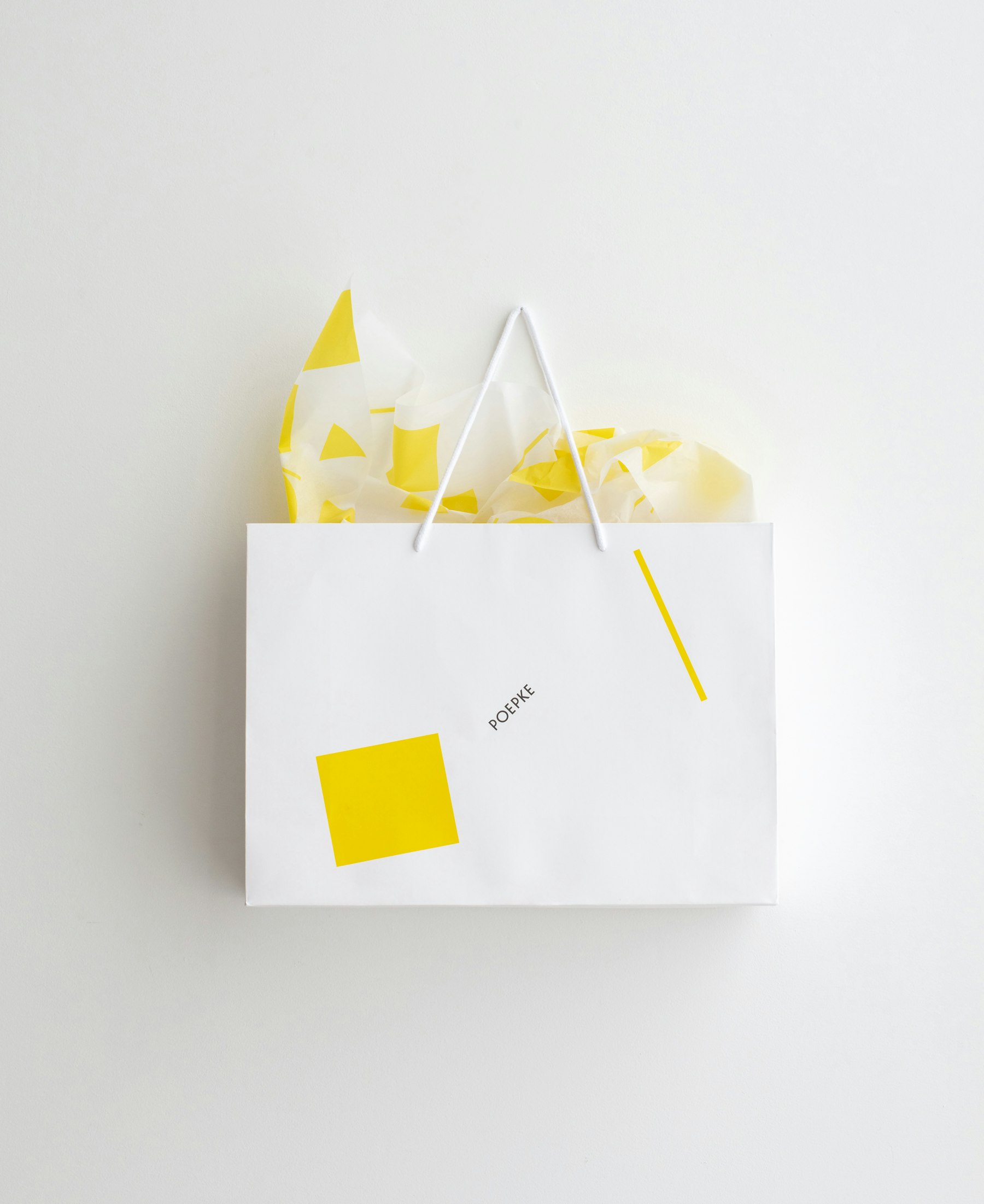 Poepke is a boutique which began with a focus on Belgian design and has grown to include a mix of luxury fashion brands and homewares. Our approach to their identity design was playful and explorative. Reducing the Poepke letterforms to geometric shapes before running them through a random generator program gave us endless options and unusual combinations to feature on bags, tissue and other printed collateral. Each one unique and unexpected.